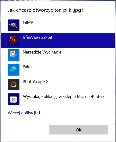 Nie mogę zmienić, żeby system otwierał mi wszystkie zdjęcia w Irfanview.