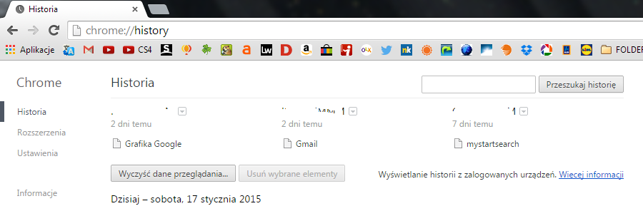 Mianowicie usunąłem porywacza przeglądarek Mystartsearch z ustawień w Google Chrome , ale nie wiem jak pozbyć się tego z historii