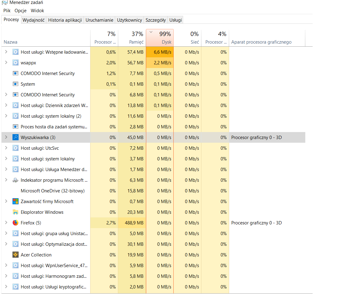 Jak w temacie. Kupiłem nowego laptopa. Strasznie zamulił. Zużycie dysku w menedżerze pokazuje 100%. Sprzęt jest nowy. Dyski w zasadzie puste. Trochę zgłupiałem co robić.