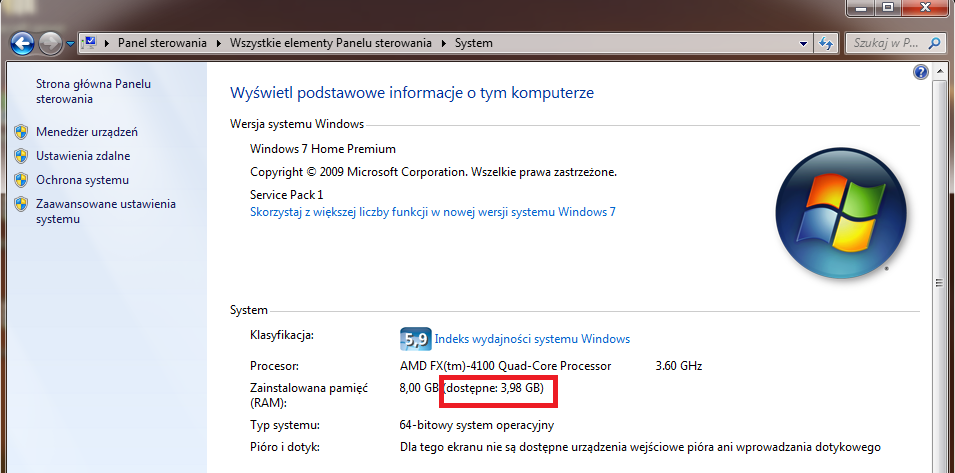 1. System Windows 7 Home Premium SP1 PL OEM (64bit)