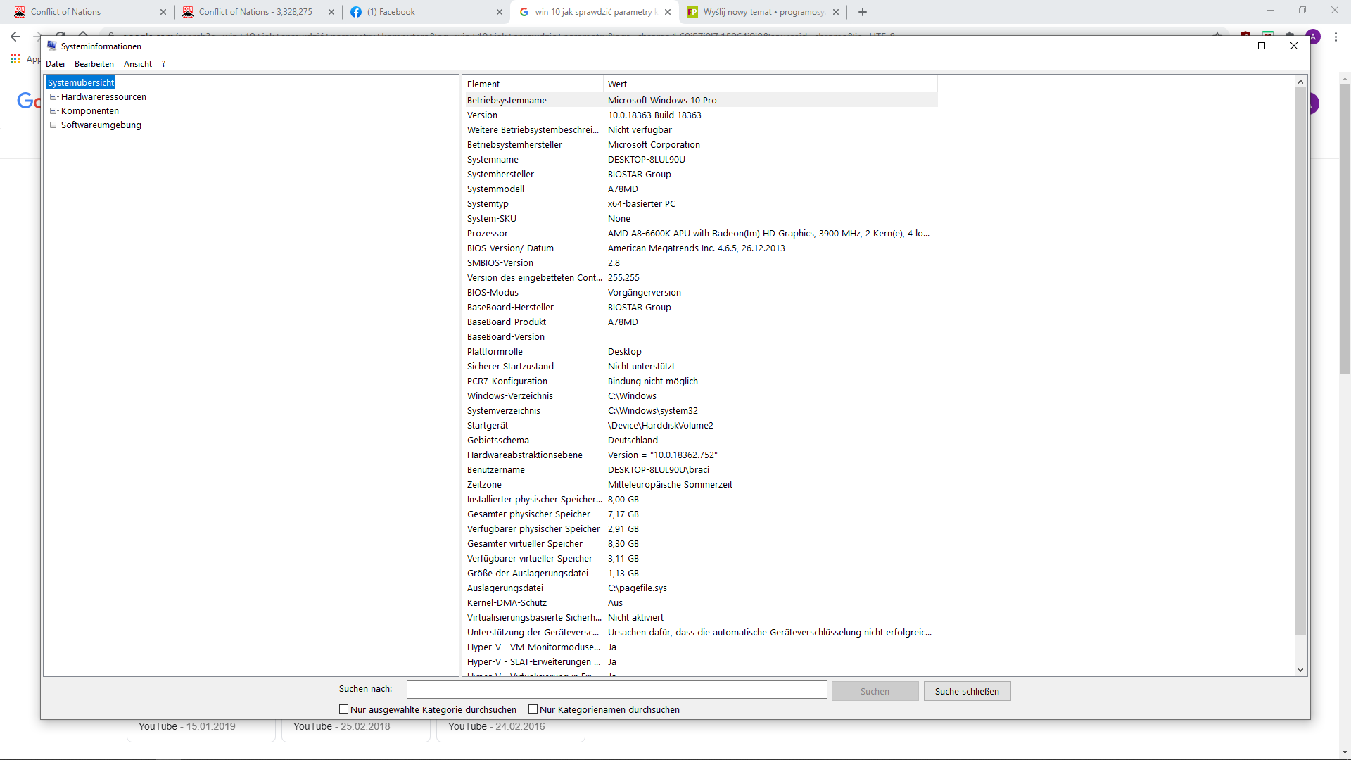 Verfügbarer physikalischer RAM: 3134.32 MB
