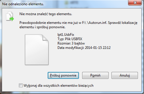Na początku roku miałem problem z pendrivem, a mianowicie, znajdował się na nim skrót do niego samego. Problem został rozwiązany, niestety teraz znów zniknęły mi dane i na urządzeniu znajduje się katalog Autorun.inf, a dane są w katalogu bez nazwy, który na dodatek jest ukryty. Puściłem skan z FRST - poniżej logi.