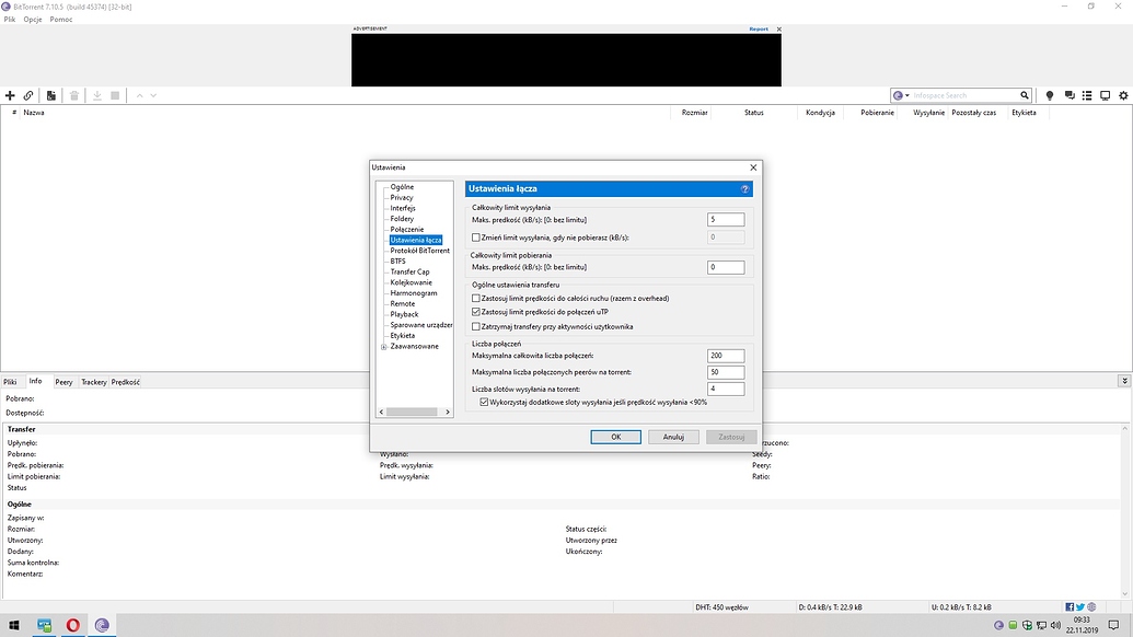 Bittcorent, zależny jest od plików usadowionych, wysyłanych przez innych klientów. I całkiem możliwe że to nie jest wina Twojego łącza, lecz użytkowników który w danym momencie udostępnia dane pliki w sieci. Tym bardziej w teraźniejszych czasach programy uTorrent, jak i Bittcorent już umierają, dlatego to nie koniecznie musi być wina Twojego łącza.