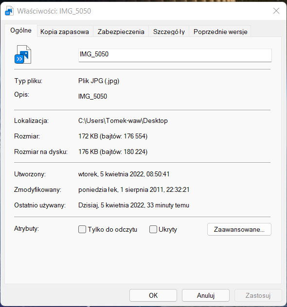 - Nie ma opcji zmiany we właściwościach pliku,