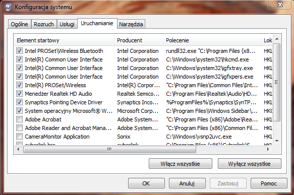 Później zawsze możesz włączyć je z powrotem w miarę potrzeby. Oczywiście możesz dac screena okna z msconfig