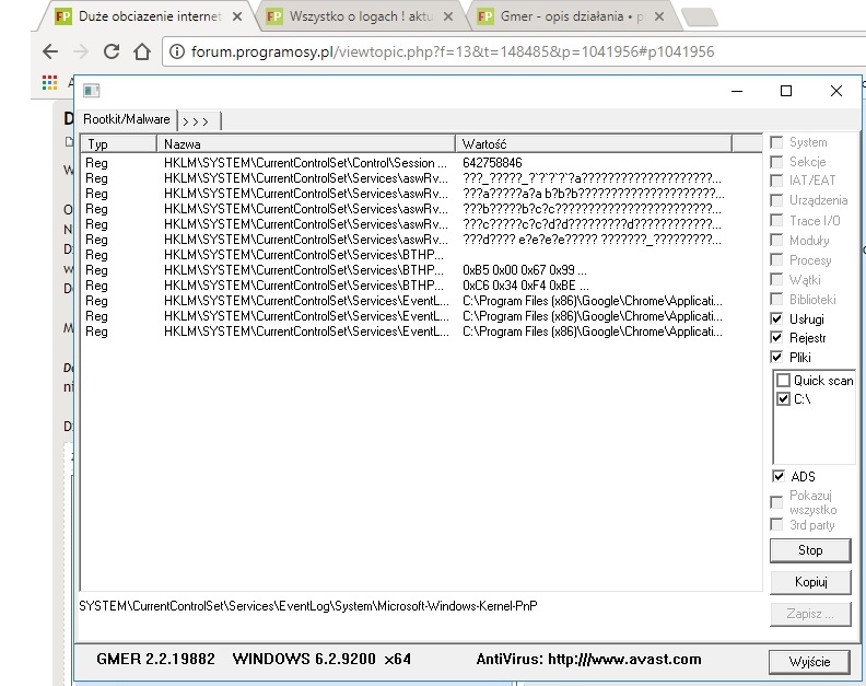 Nie mogłem w GMER zaznaczyc wszystkich opcji tak jak na instrukcji i tez nie wiem dlaczego.