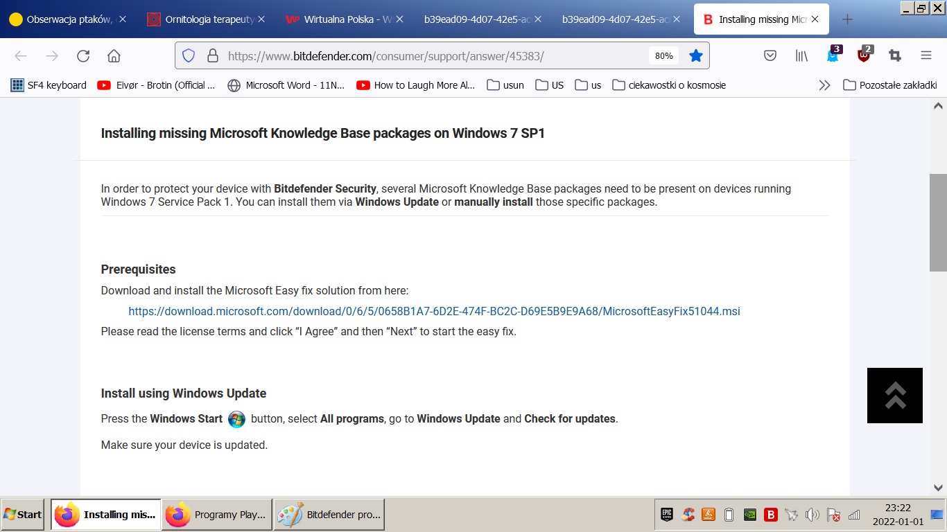 Masz WIN 7, który już nie jest wspierany przez Microsoft, więc oczywiście żadne zainstalowanie łatki nie może się udać.