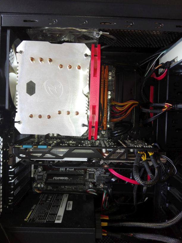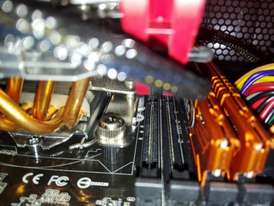 Śmiem twierdzić, że to chłodzenie jest sporo za duże. Niestety zdjęcia nie obrazują problemu. Gdybyć wyjął grafę i cyknął ze spodu przy płycie to byłoby lepiej. Ty jesteś w stanie zamknąć obudowę z tym chłodzeniem?